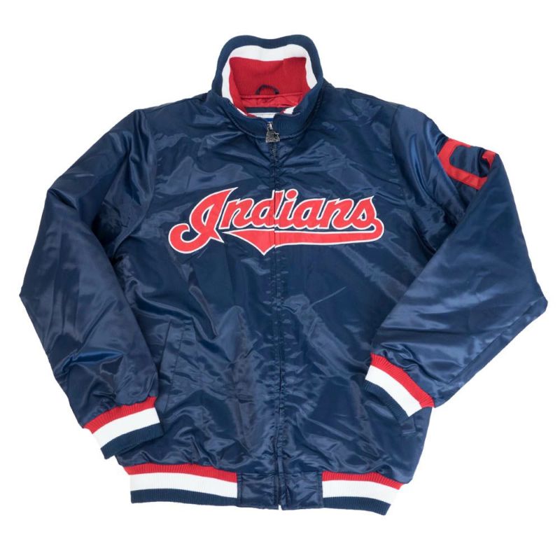 MLB インディアンス ジャケット Quilt Lined サテン スタジャン アウター STARTER ネイビー 2212msg