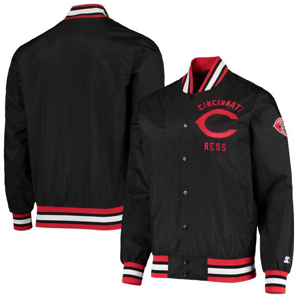 MLB シンシナティ・レッズ ジャケット The Jet III スタジャン フルスナップ アウター STARTER ブラック 2212msg