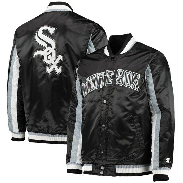 MLB ホワイトソックス ジャケット The Ace サテン スタジャン フルスナップ アウター STARTER ブラック 2212msg