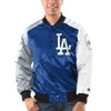 MLB ドジャース スタジャン Varsity 3カラー サテン フルスナップ ジャケット アウター STARTER Royal/Gray 2212msg