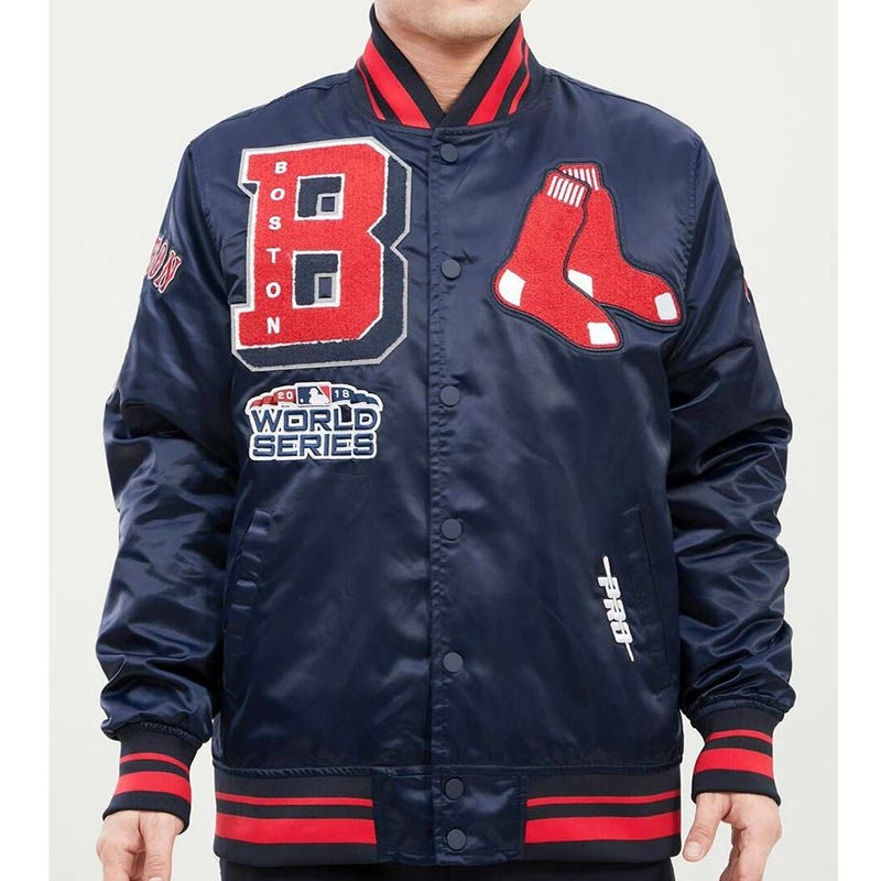 MLB レッドソックス ジャケット Mash Up Logo サテンジャケット アウター Pro Standard プロスタンダード ミッドナイトネイビー/レッド