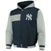 MLB ヤンキース ジャケット リバーシブル フルスナップ フーディー アウター JH Design ネイビー グレー