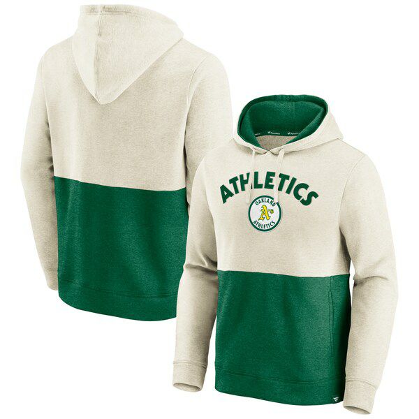 MLB アスレチックス パーカー ヴィンテージ アーチ プルオーバー フーディー オートミール グリーン
