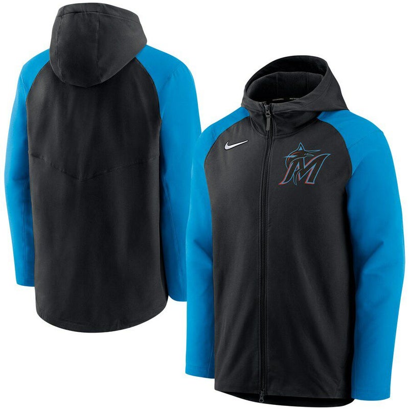 MLB マーリンズ パーカー オーセンティックコレクション AC Raglan フルジップ フーディー ナイキ/Nike ブラック ブルー