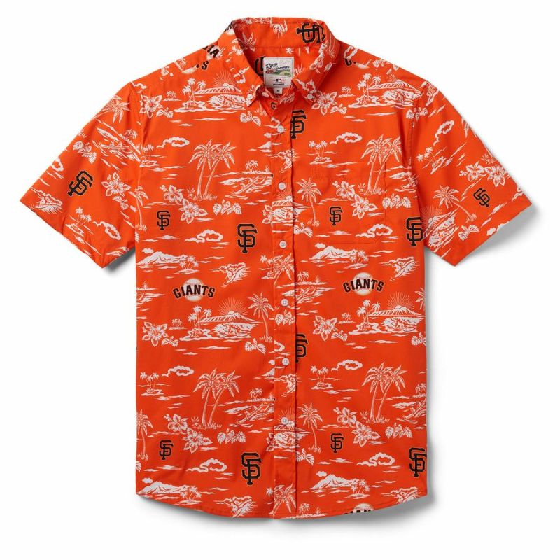 MLB SF ジャイアンツ アロハシャツ ハワイアン KEKAI PERFORMANCE フロントボタン レインスプーナー Reyn Spooner オレンジ