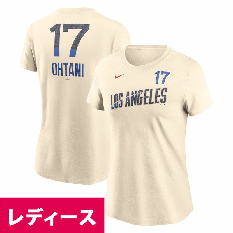関連キーワード[ジャージ][ユニホーム][Women's 2024 City Connect Fuse Name & Number T-Shirt][Los Angeles Dodgers][Shohei Ohtani #17][Cream ][メジャーリーグ 大リーグ][LAD]
