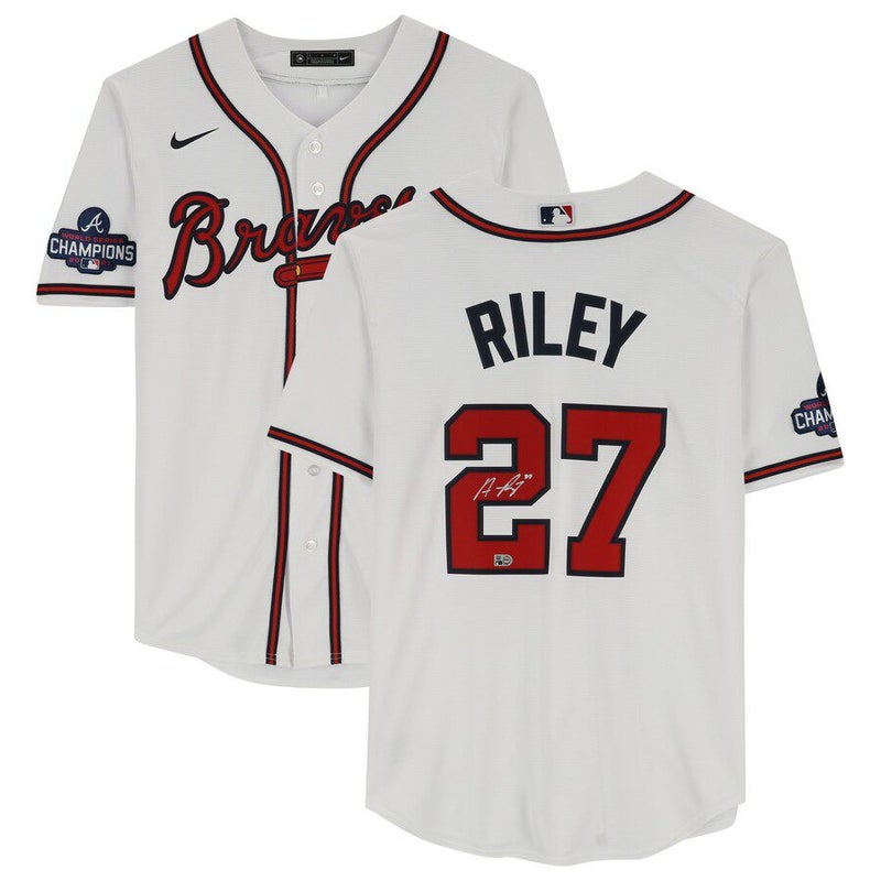MLB オースティン・ライリー ブレーブス 直筆サイン ユニフォーム ワールドシリーズ2021 パッチ レプリカジャージ ナイキ/Nike ホワイト