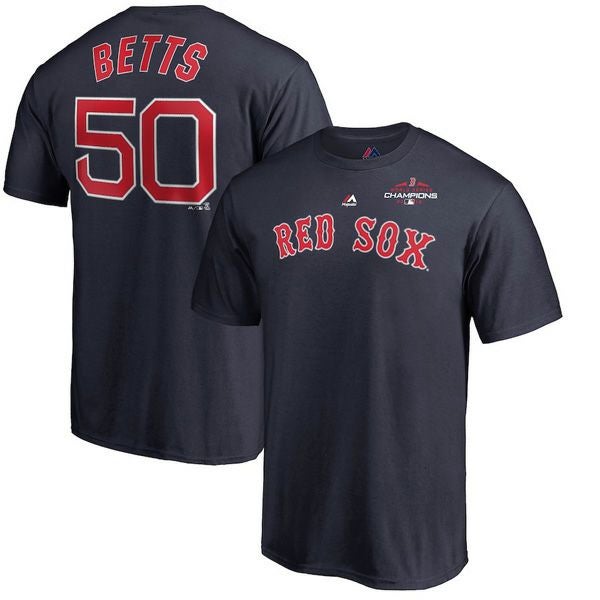 リニューアル記念メガセール MLB レッドソックス ムーキー・ベッツ Tシャツ 2018 ワールドチャンピオン記念 ネーム&ナンバー ネイビー 1009IK