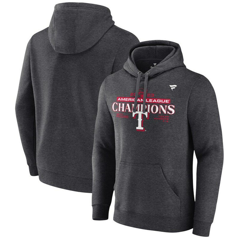 MLB レンジャーズ パーカー 2023 アメリカンリーグ 優勝記念 ロッカールーム Pullover Hoodie Fanatics Branded ヘザーチャコール