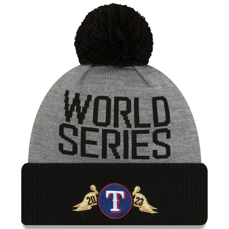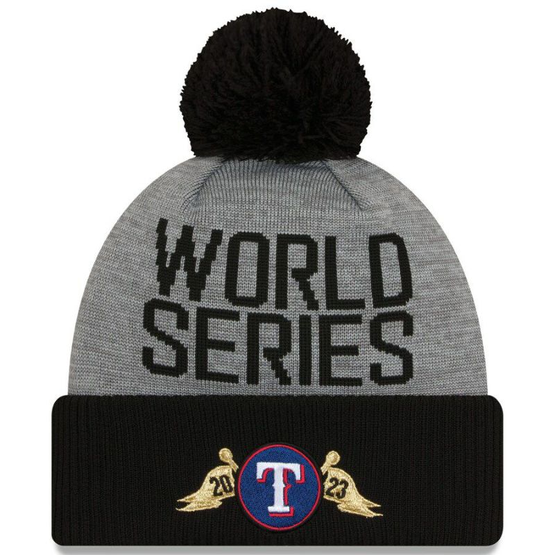 MLB レンジャーズ ニットキャップ 2023 アメリカンリーグ 優勝記念 ロッカールーム Cuffed Knit with Pom ニューエラ/New Era ブラック