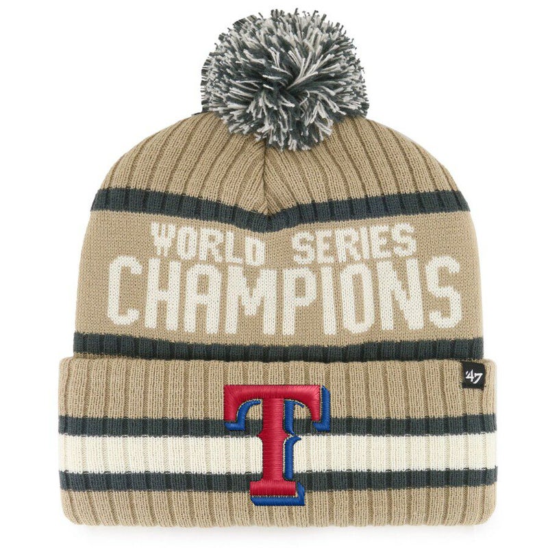 MLB レンジャーズ ニットキャップ 2023 ワールドシリーズ 優勝記念 Champions Cuffed Knit with Pom 47Brand カーキ