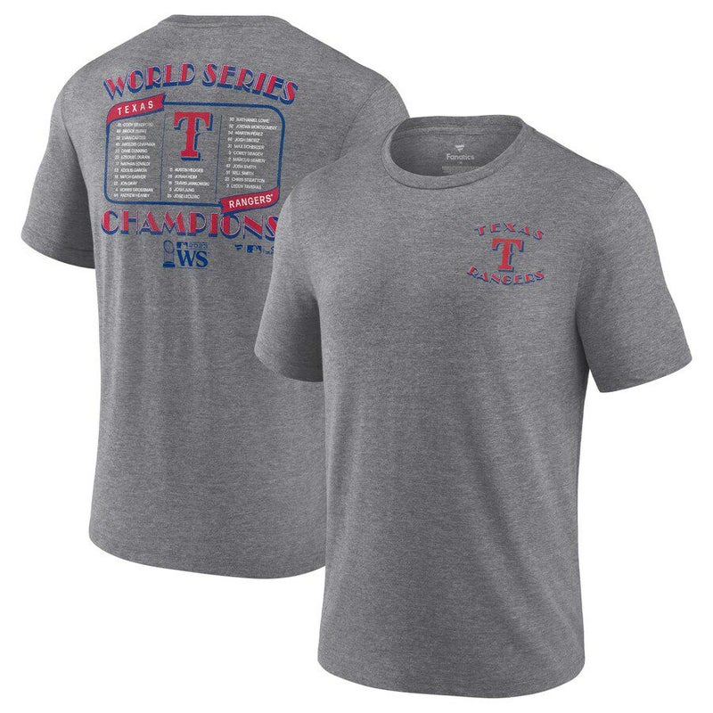 MLB レンジャーズ Tシャツ 2023 ワールドシリーズ 優勝記念 Champions Roster Fanatics ヘザーグレー