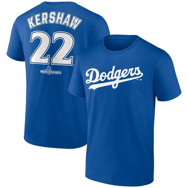 MLB クレイトン・カーショー ドジャース Tシャツ 2024 ワールドシリーズ進出記念 Push Limits Name & Number T-Shirt Fanatics ロイヤル
