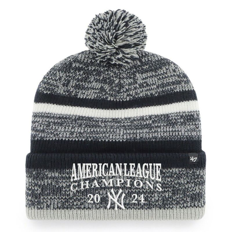 MLB ヤンキース キャップ 2024 アメリカンリーグ優勝記念 Northward Cuffed Knit Hat with Pom 47Brand ネイビー