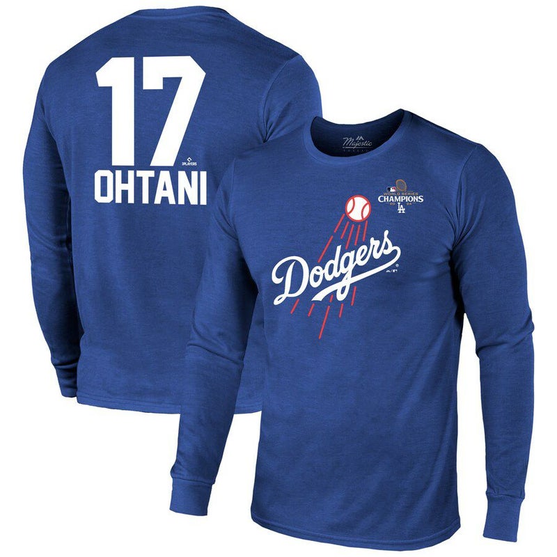 MLB 大谷翔平 ドジャース Tシャツ 【海外版】ワールドシリーズ2024優勝記念 ネーム&ナンバー Long Sleeve T-Shirt Majestic