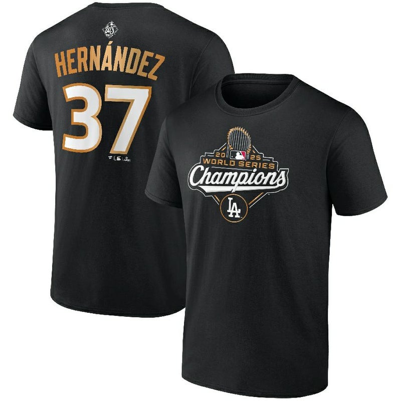 MLB テオスカー・ヘルナンデス ドジャース Tシャツ 【海外モデル】ワールドシリーズ2025優勝記念 ネーム&ナンバー Fanatics ブラック