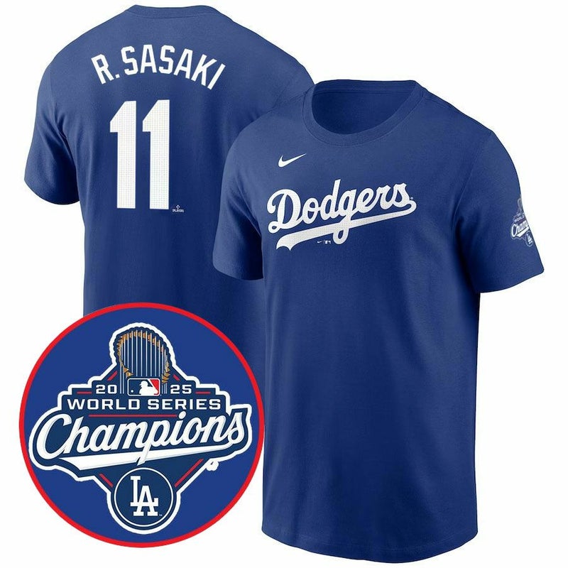 MLB 佐々木朗希 ドジャース Tシャツ 【海外モデル】ワールドシリーズ2025優勝記念 ネーム&ナンバー ナイキ/Nike ロイヤル