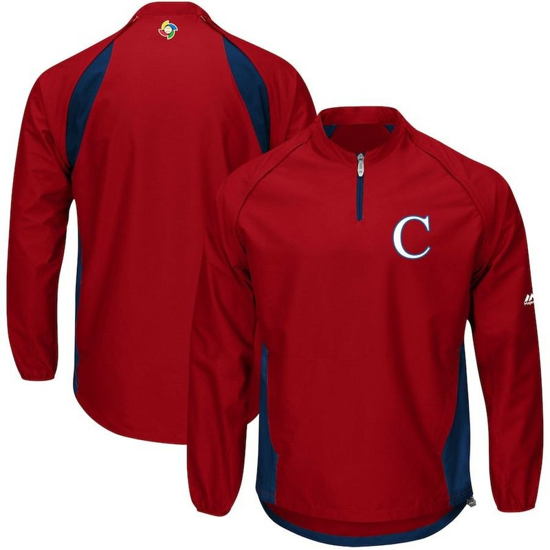 WBC キューバ ジャケット 2017 World Baseball Classic ゲーム ハーフジップ アウター マジェスティック/Majestic レッド/ネイビー