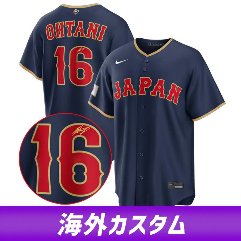 関連キーワード[ジャージ][ユニホーム][【海外カスタム】2026 World Baseball Classic Road Stadium Jersey(Gold Player Sign)][Shohei Ohtani #16][Navy]
