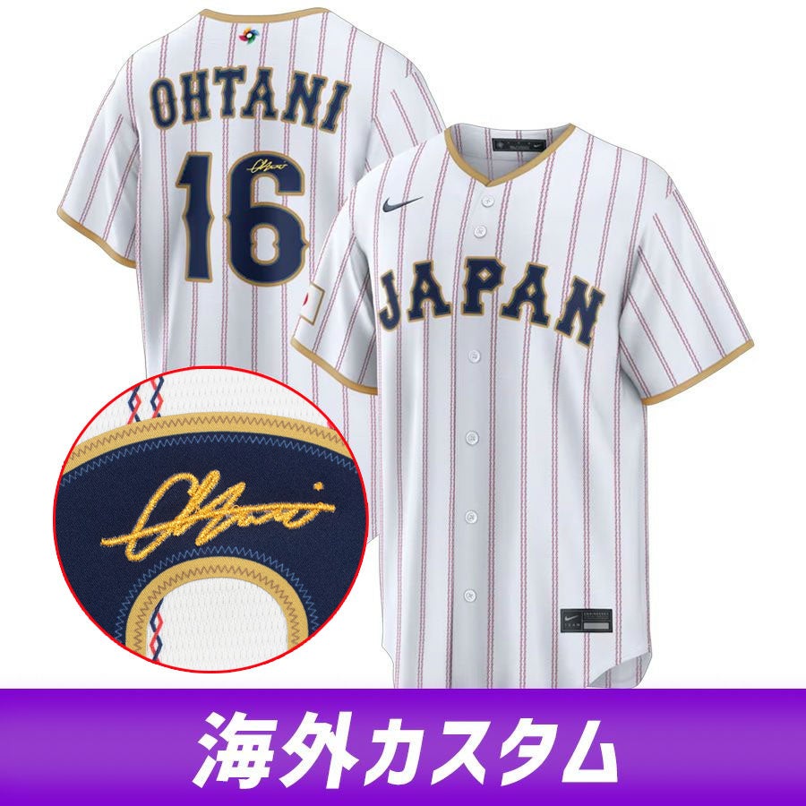 他の画像を見る WBC 2026 x Nike 侍JAPAN 大谷翔平 サイン刺繍 ユニフォーム WBC 大谷翔平 侍ジャパン 日本 ユニフォーム 【海外カスタム】2026 ワールドベースボールクラシック ホーム スタジアム サイン刺繍 ナイキ/Nike ¥ 77,000 税込 カートに入れる お気に入りに登録する