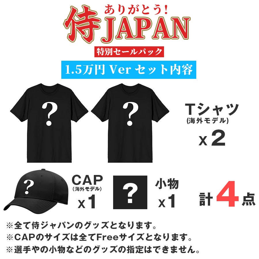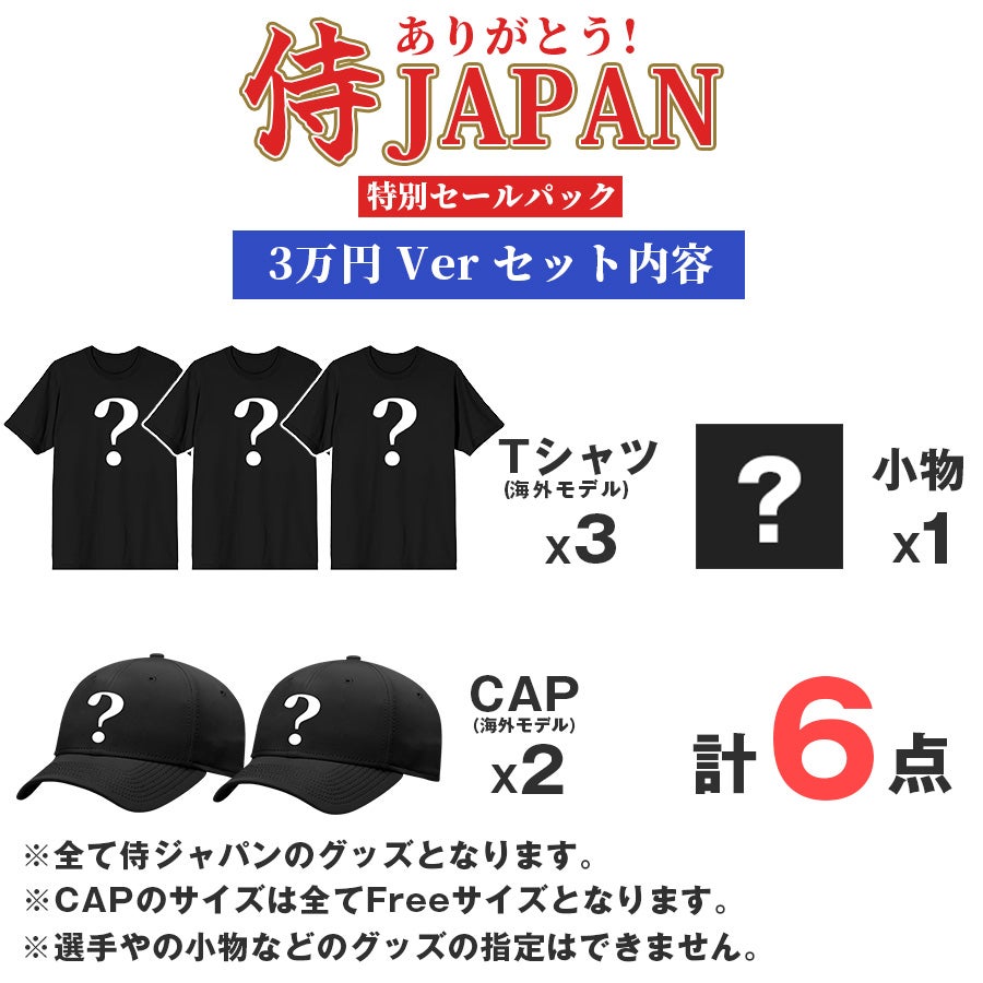 他の画像を見る 感動をありがとう 侍ジャパンセールパック 1.5万円Ver WBC ありがとう 侍ジャパンセールパック 1.5万 ワールドベースボールクラシック 2026 日本 福袋 Tシャツ キャップ 小物 ¥ 16,500 税込 カートに入れる お気に入りに登録する