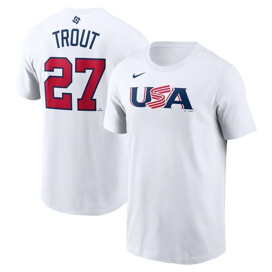 他の画像を見る WBC 2023 アメリカ代表 x Nike ネーム&ナンバーTシャツ WBC マイク・トラウト アメリカ代表 USA Tシャツ 2023 World Baseball Classic ネーム&ナンバー T-Shirt ナイキ/Nike ホワイト ¥ 13,200 税込 在庫切れ カートに入れる お気に入りに登録する