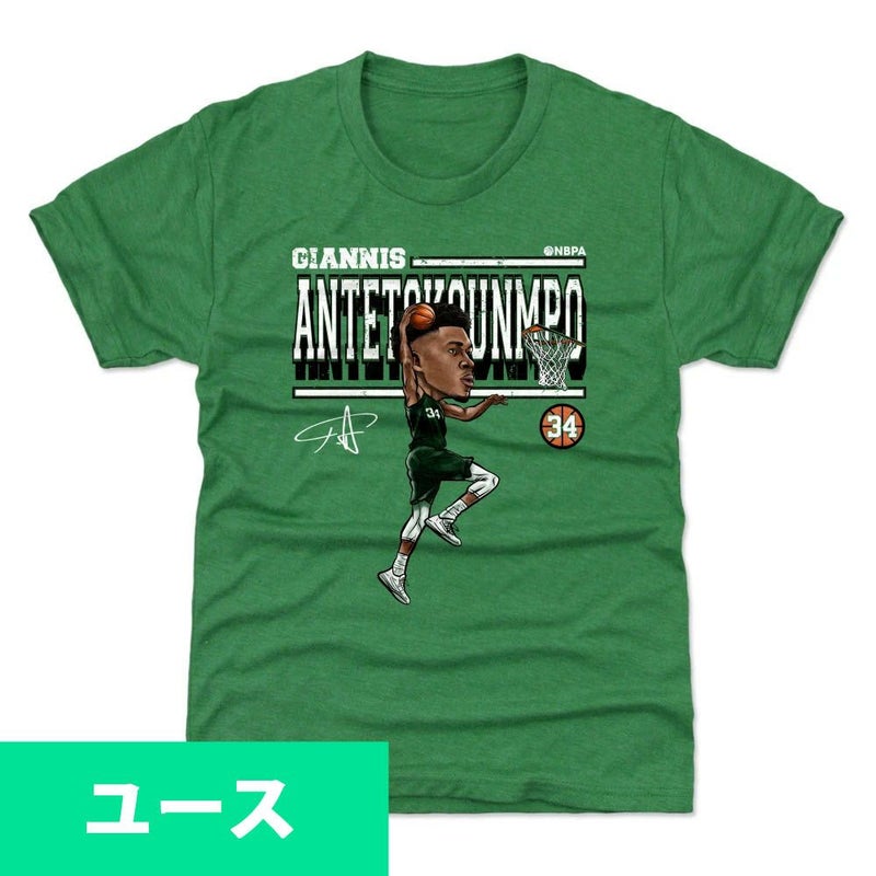 NBA ヤニス・アデトクンボ ミルウォーキー・バックス Tシャツ ユース キッズ Cartoon T-Shirt 500Level ケリーグリーン