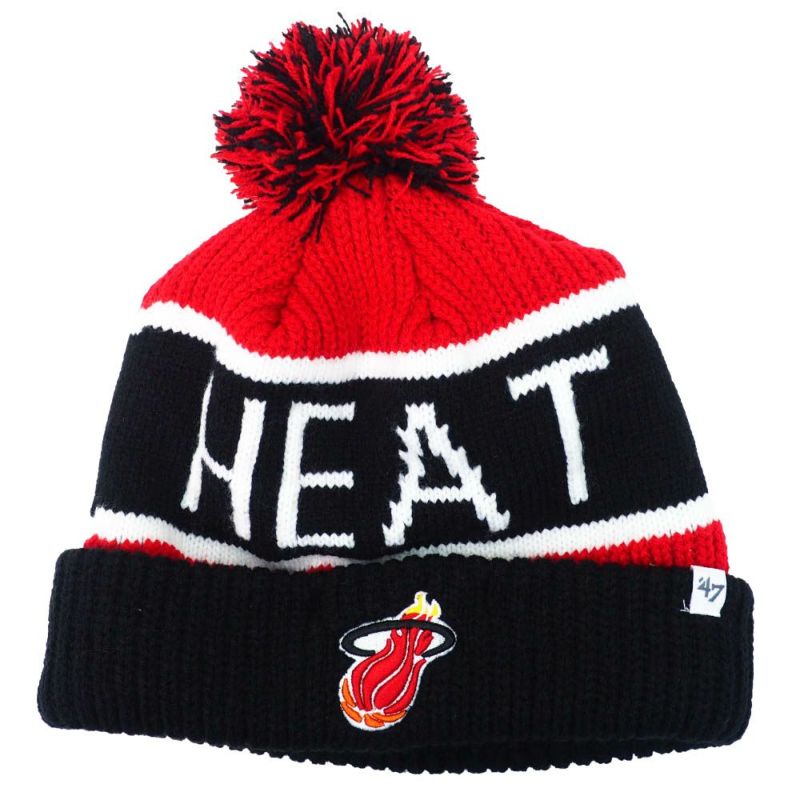 NBA マイアミ・ヒート ニットキャップ/ニット帽 Calgary Cuff Knit Hat with Pom 47 Brand ブラック