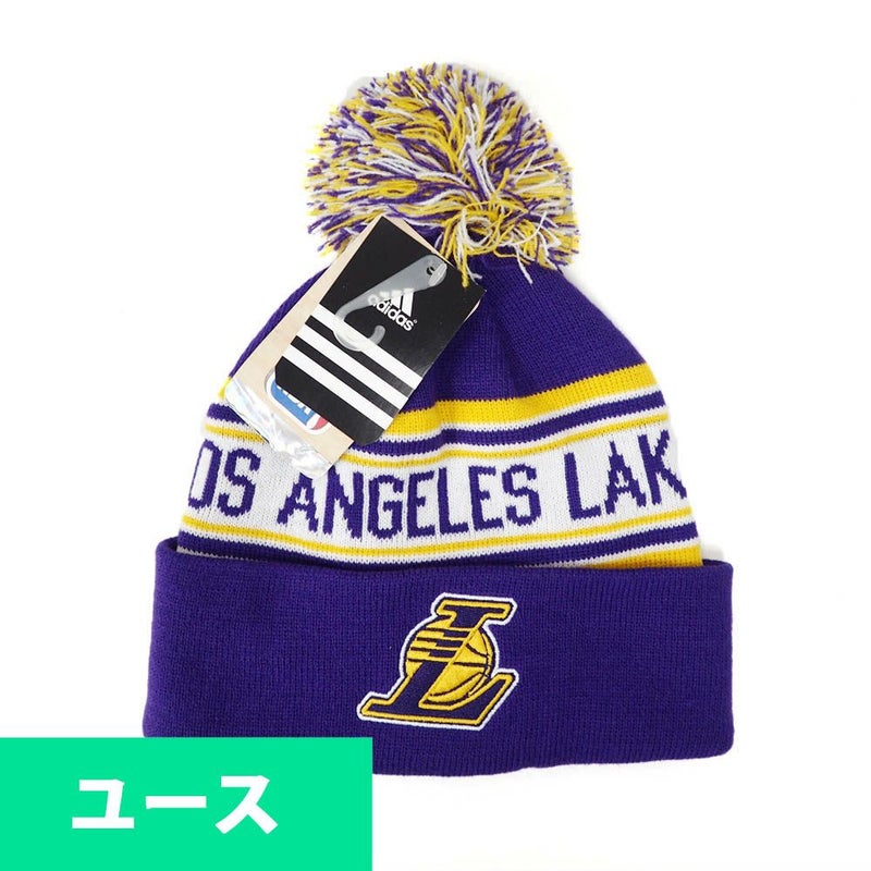 レイカーズ ニットキャップ ニット帽 NBA ユースサイズ カフド ビーニー キッズ アディダス Adidas パープル
