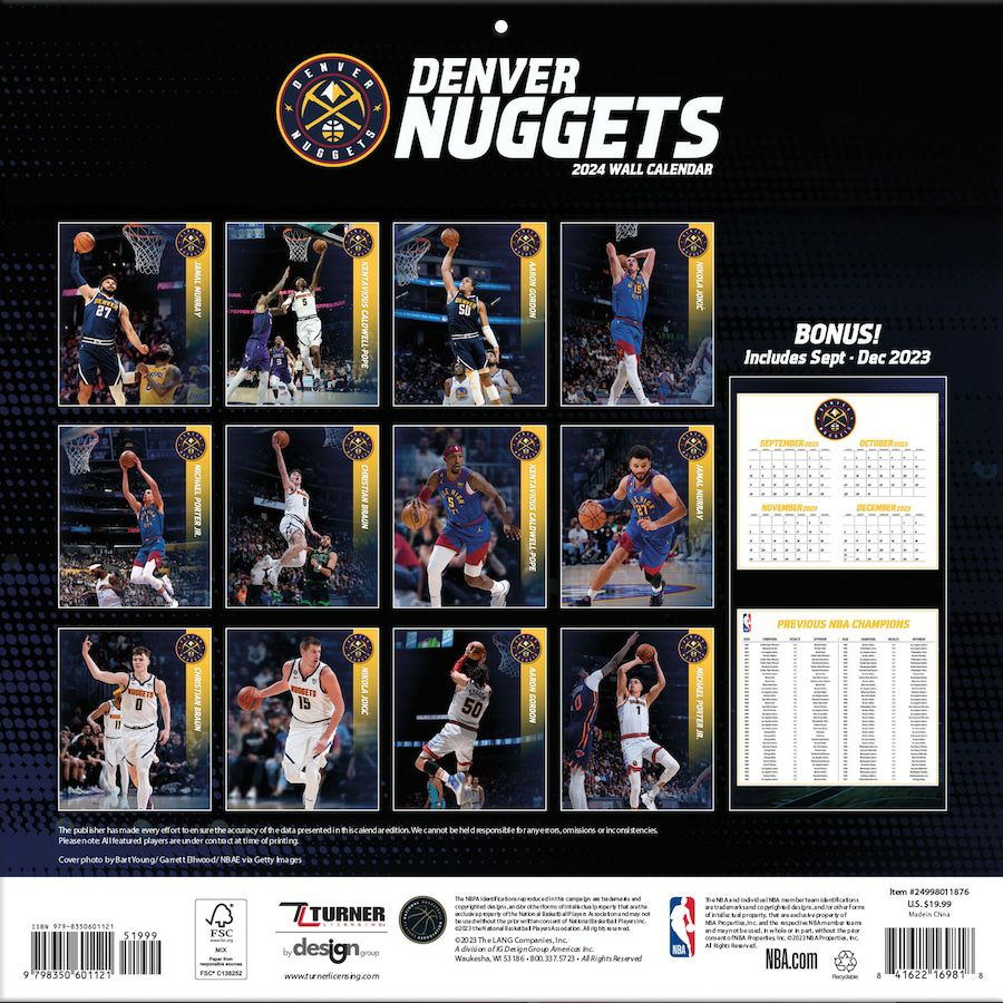 他の画像を見る NBA 2023年版 チーム 壁掛けカレンダー NBA ナゲッツ カレンダー 2023年 12x12 チーム 壁掛け Calendar Turner ¥ 6,600 税込 カートに入れる お気に入りに登録する