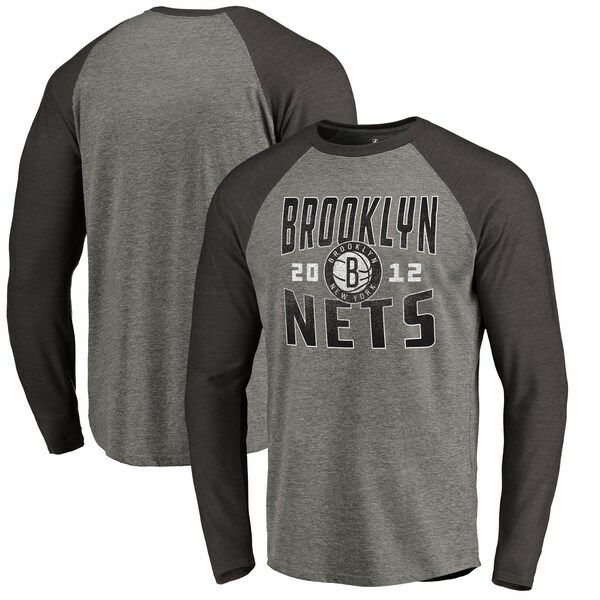 NBA ブルックリン・ネッツ Tシャツ Antique Stack ラグラン ロングスリーブ Fanatics Branded アッシュ