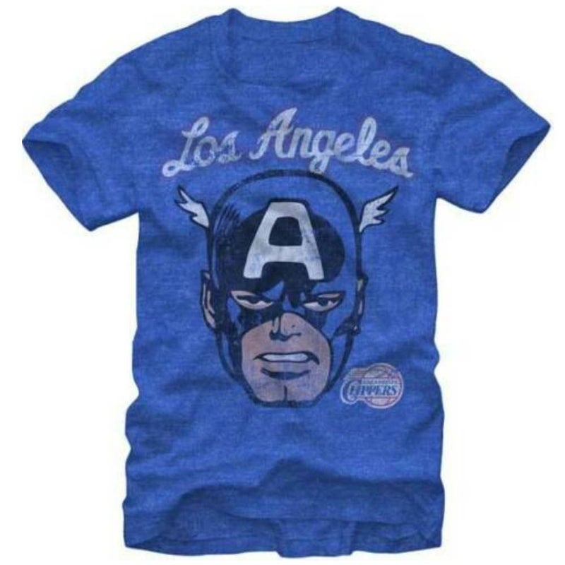 NBA ロサンゼルス・クリッパーズ Tシャツ Captain America Face キャプテン・アメリカ アベンジャーズ Marvel ロイヤル【OCSL】