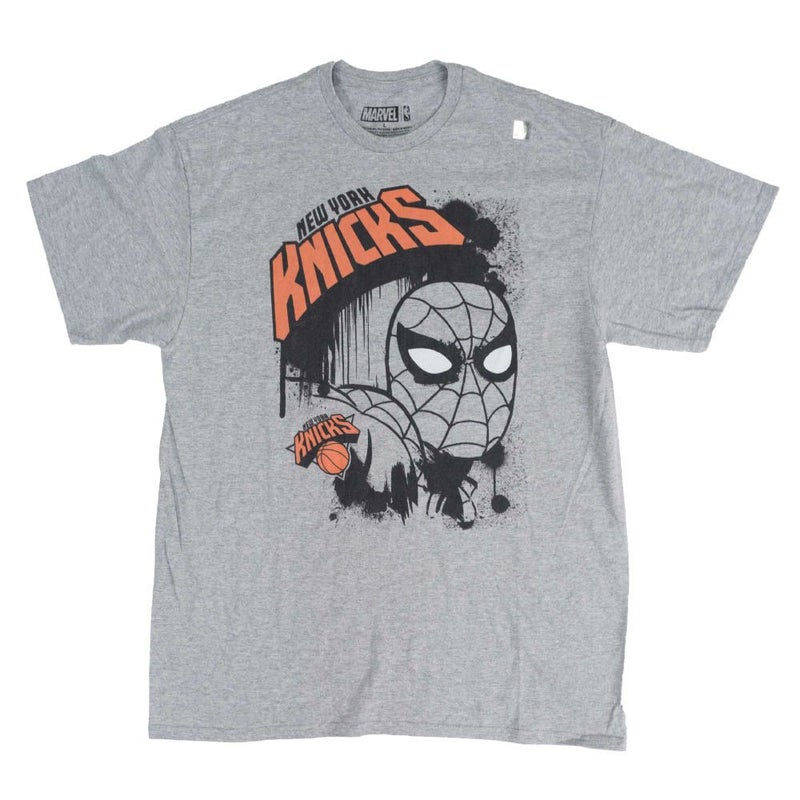 NBA ニューヨーク・ニックス Tシャツ Spider Man Super Hero スパイダーマン アベンジャーズ Marvel グレー【OCSL】