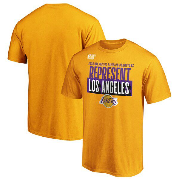 NBA ロサンゼルス・レイカーズ Tシャツ 2020 Pacific Division Champions Locker Room T-Shirt ゴールド NBAプレーオフ2020