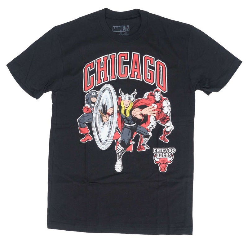 マーベル Tシャツ 半袖 アベンジャーズ Tシャツ ブルズ Tシャツ 黒 ブラック NBA MARVEL アメコミ【OCSL】
