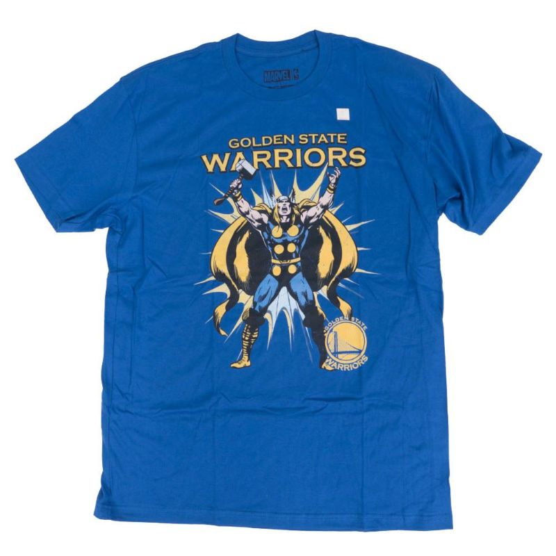 マーベル Tシャツ 半袖 ソ? ウォリアーズ Tシャツ 青 ブルー NBA MARVEL アメコミ 【OCSL】