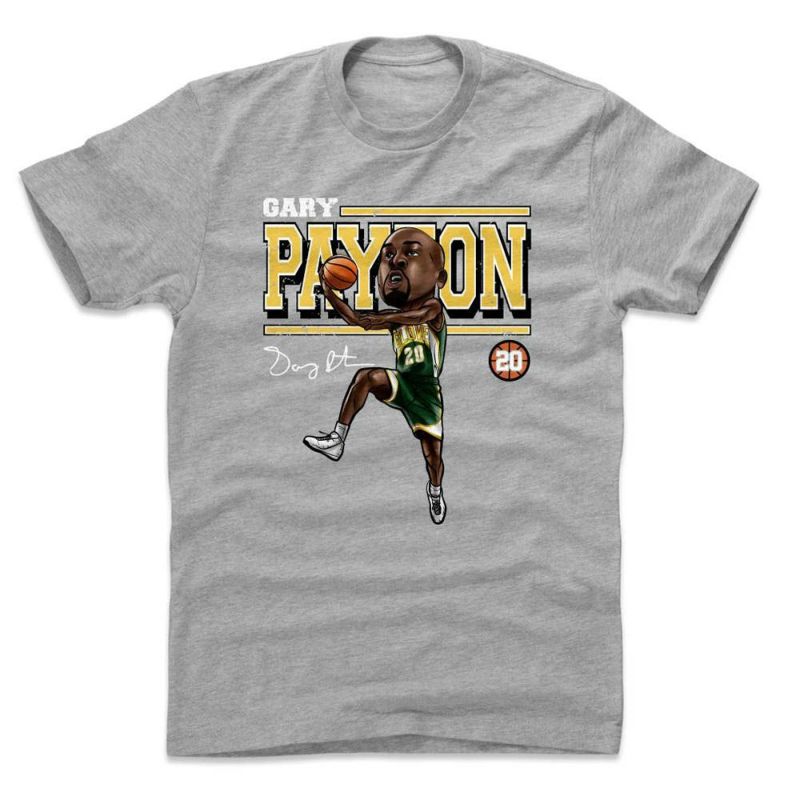 NBA シアトル・スーパーソニックス Tシャツ ゲイリー・ペイトン Cartoon T-Shirt 500Level ヘザーグレー