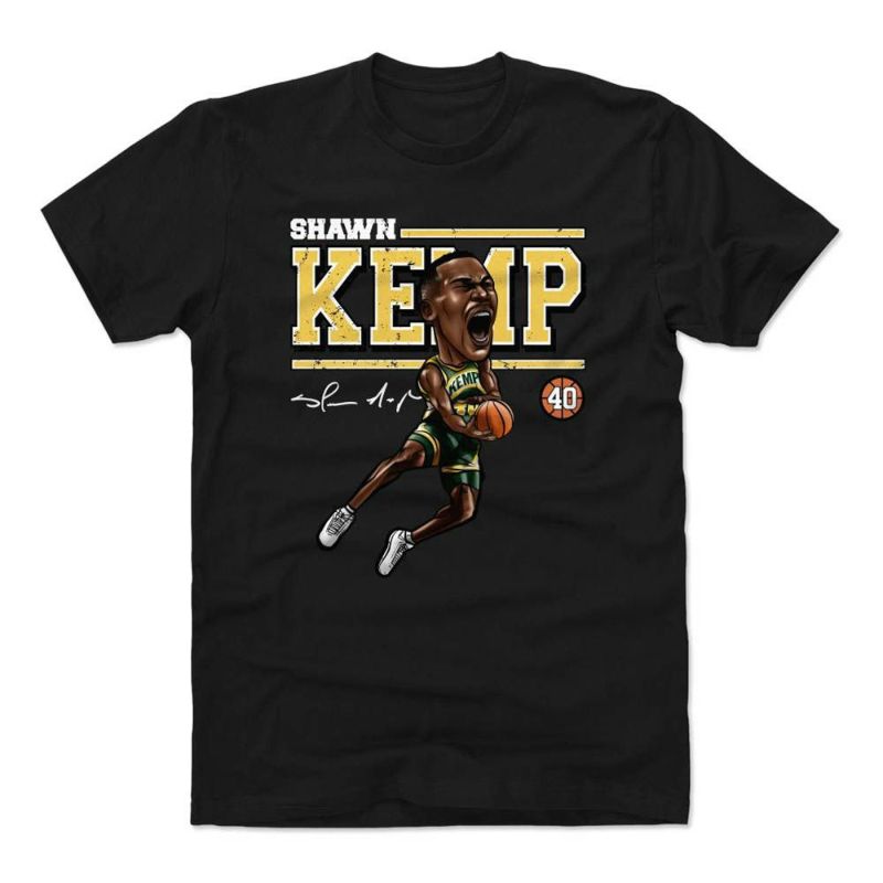 NBA シアトル・スーパーソニックス Tシャツ ショーン・ケンプ Cartoon T-Shirt 500Level ブラック