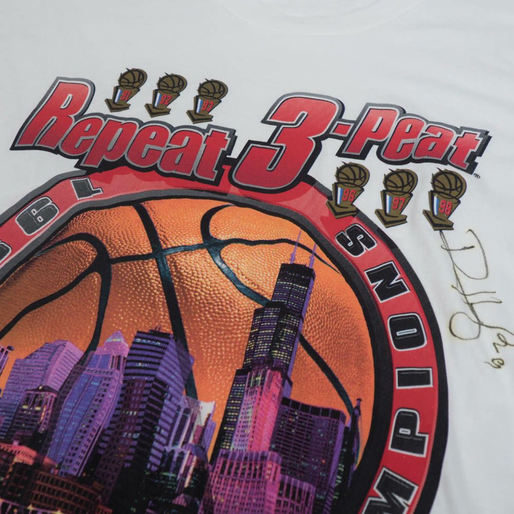 NBA ロン・ハーパー シカゴ・ブルズ Tシャツ NBAファイナル 1998 ロッカールーム Tee 1点物 直筆サイン STARTER ホワイト 2212bsg
