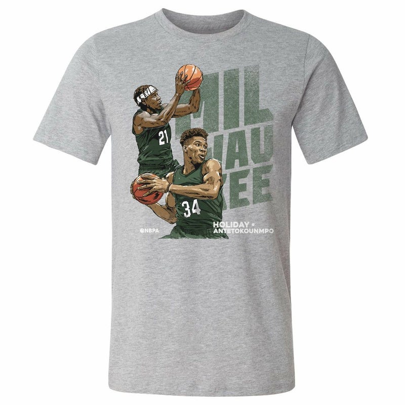 NBA ヤニス・アデトクンボ ドリュー・ホリデー ミルウォーキー・バックス Tシャツ Milwaukee Duo WHT 500Level ヘザーグレー