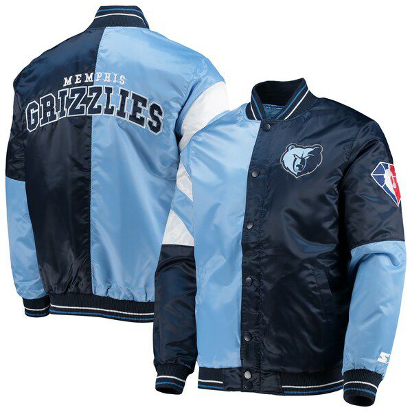 NBA グリズリーズ スタジャン 2021 カラーブロック サテン ジャケット アウター STARTER ブルーネイビー 2212bsg