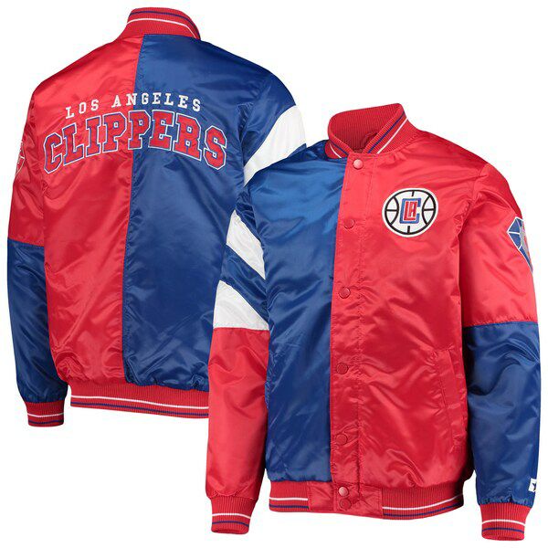 NBA クリッパーズ スタジャン 2021 カラーブロック サテン ジャケット アウター STARTER ロイヤルレッド 2212bsg