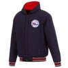 NBA 76ers ジャケット リバーシブル ポリツイル フーディー アウター JH Design ネイビー/ レッド