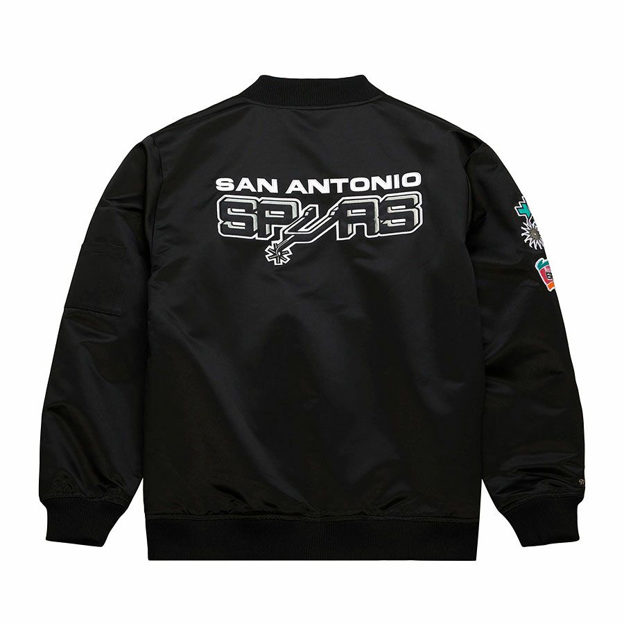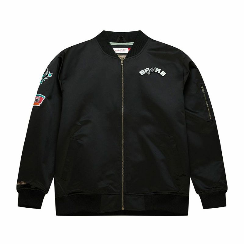 NBA スパーズ ジャケット サテン ボンバージャケット ライトウェイト ミッチェル&ネス/Mitchell & Ness ブラック