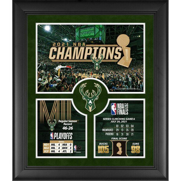 関連キーワード[NBAfinal21][チャンピオン][メモラビリア][記念品][Framed 23 x 27" 2021 NBA Finals Champions Collage"][Milwaukee Bucks][バスケットボール][MIL]