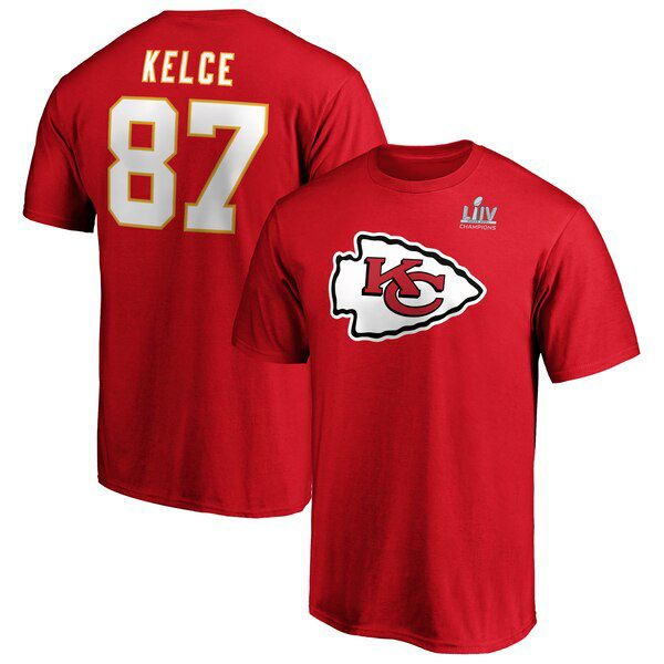 ご予約 NFL トラビス・ケルス トラビス・ケルシ チーフス Tシャツ 第54回 スーパーボウル 優勝記念 プレー クロック ネーム & ナンバー レッド