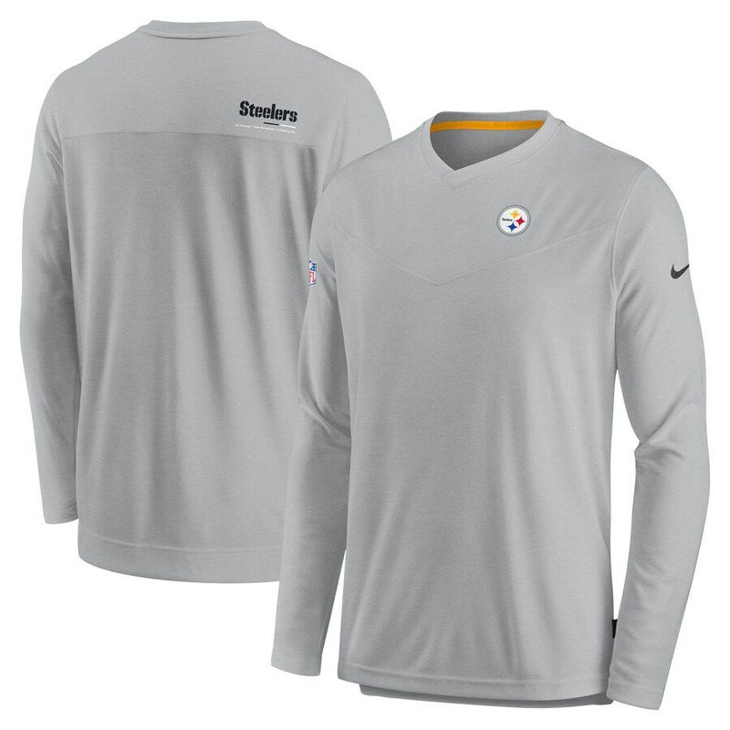 NFL スティーラーズ Tシャツ 2022 サイドライン sideline Coach Chevron Lock Up ロングスリーブ Vネック ナイキ/Nike グレー