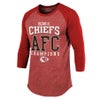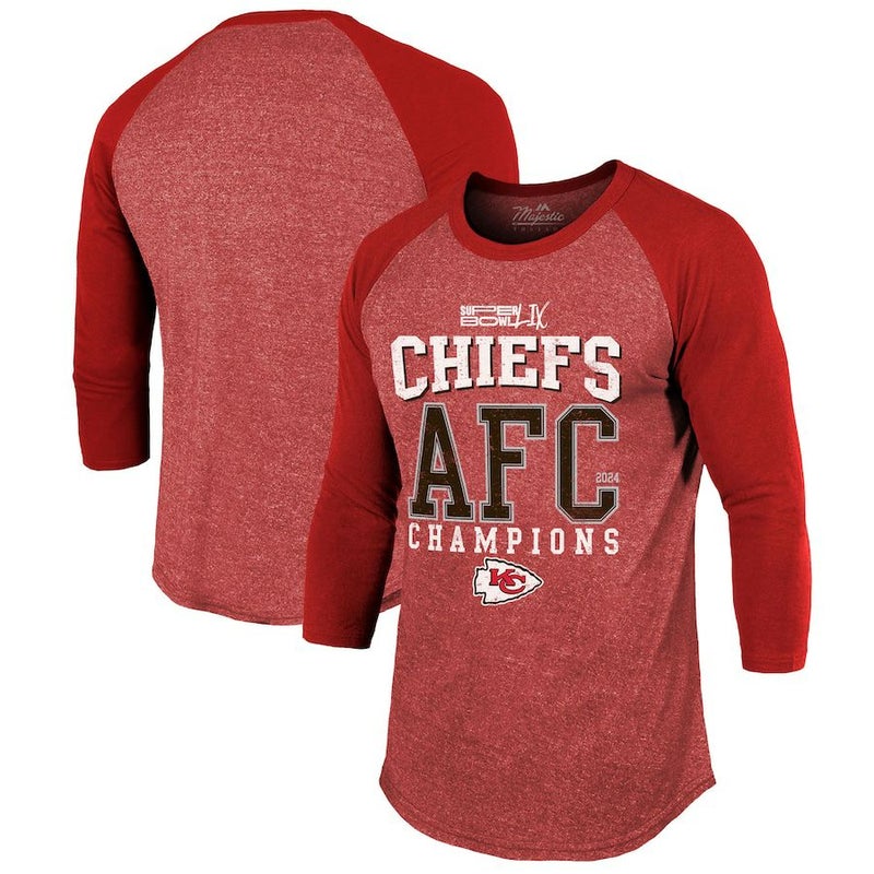 NFL チーフス Tシャツ 2024 AFC 優勝記念 3/4-Sleeve Raglan Tri-Blend T-Shirt マジェスティック/Majestic レッド