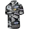 チームロゴが全面にデザインされた半袖ボタンシャツ