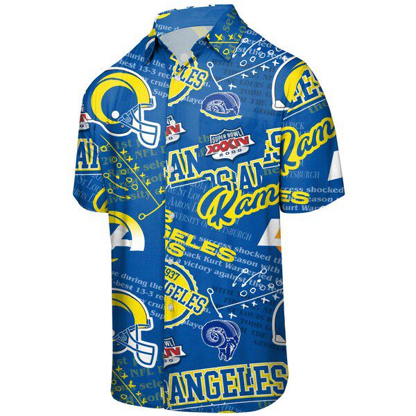 NFL シャツ 半袖 ラムズ FOCO ロイヤル メンズ 半袖 ボタン Thematic Button-Up Shirt